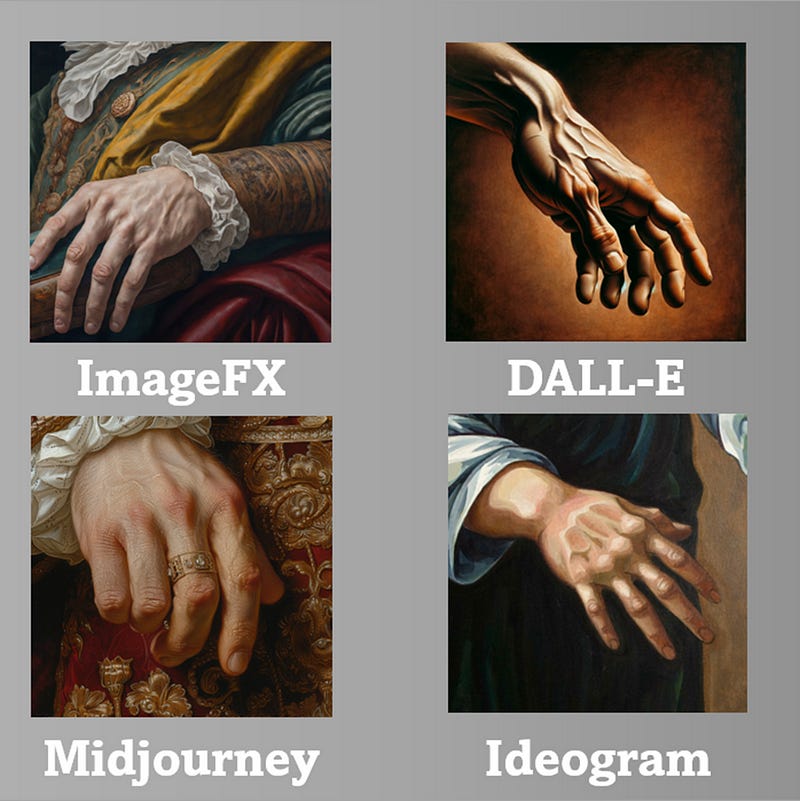 Remember the trope that “AI cannot draw hands.” It is getting better. DALL-E is still a six-fingered abomination, but Ideogram and ImageFX are about 90% there. Midjourney is near-flawless.